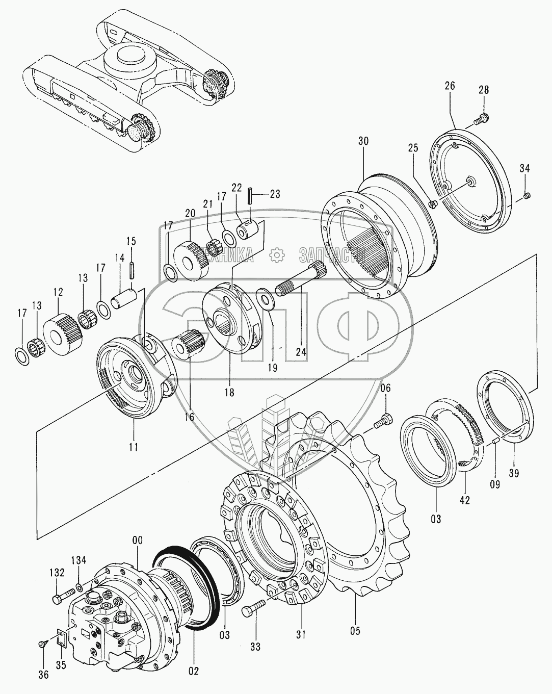 Каталог запасных частей к технике: Hitachi EX-100-3. TRAVEL DEVICE