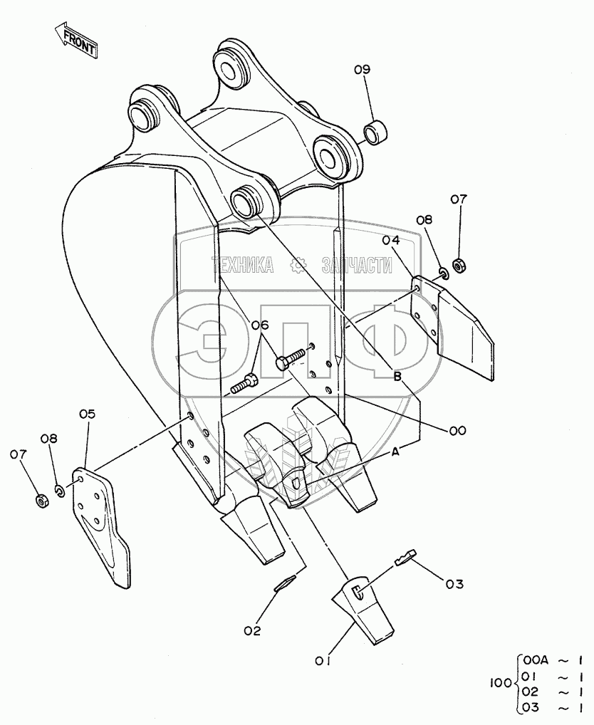 Каталог запасных частей к технике: Hitachi EX-100WD. BUCKET 0.25