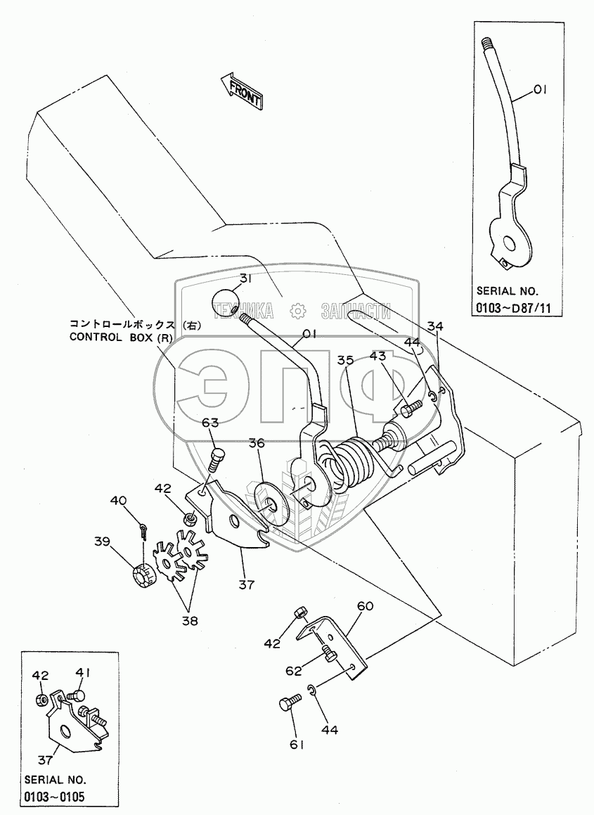 Каталог запасных частей к технике: Hitachi EX-100WD. ENGINE CONTROL LEVER (1)