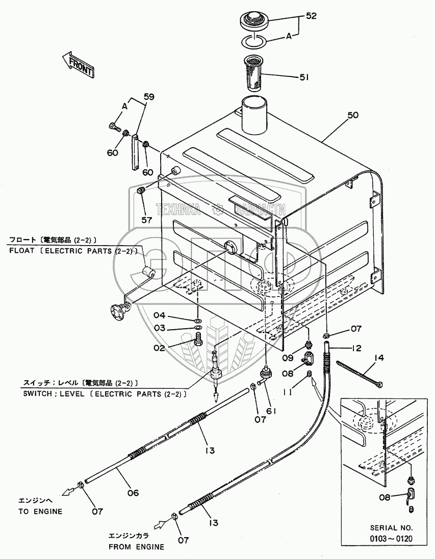 Каталог запасных частей к технике: Hitachi EX-100WD. FUEL TANK