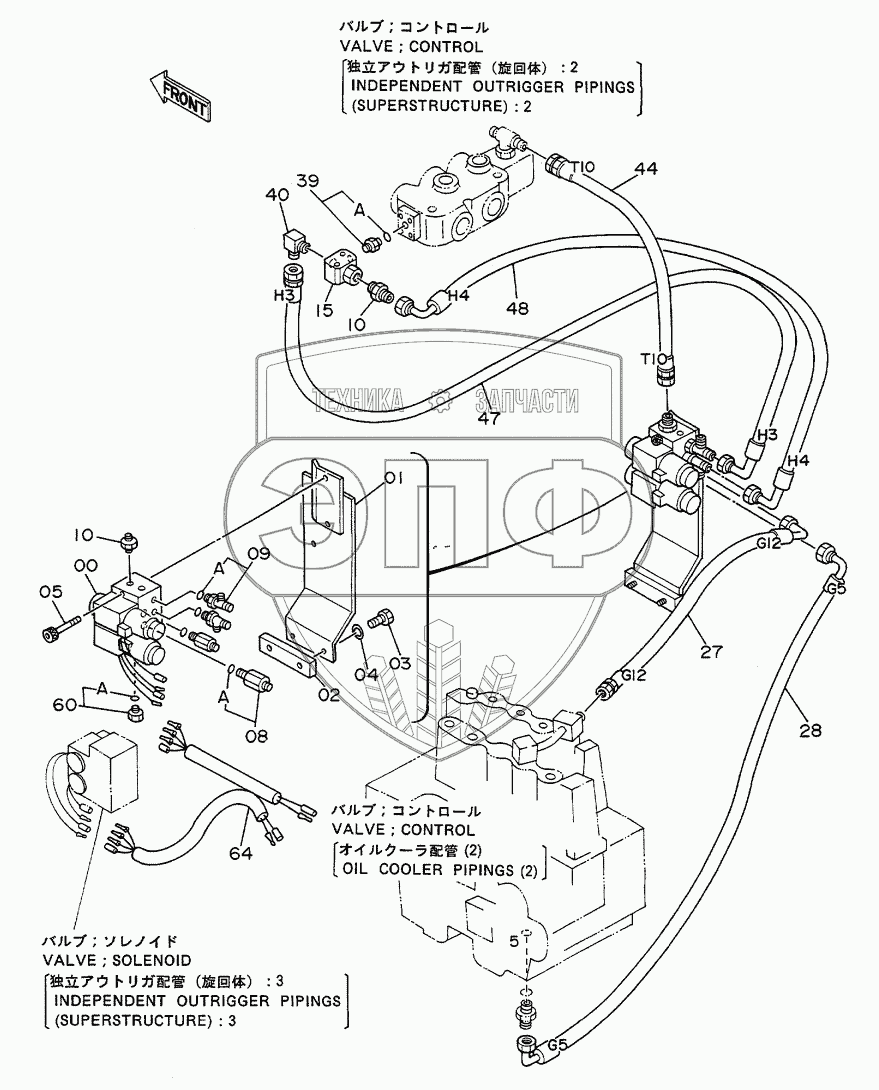 Каталог запасных частей к технике: Hitachi EX-100WD. Independent Outrigger Pipings (Superstructure): 1