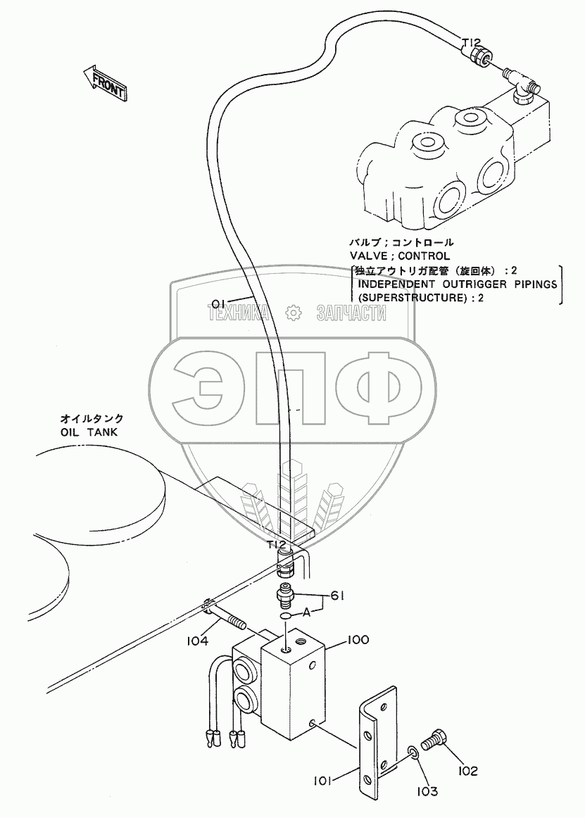 Каталог запасных частей к технике: Hitachi EX-100WD. Independent Outrigger Pipings (Superstructure): 3