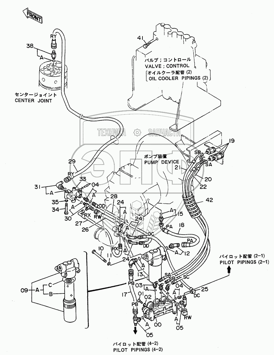 Каталог запасных частей к технике: Hitachi EX-100WD. PILOT PIPINGS (1)