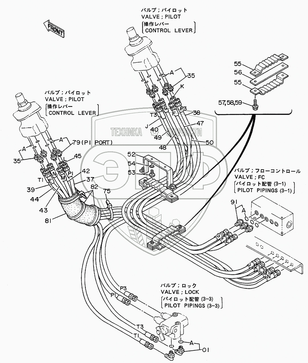 Каталог запасных частей к технике: Hitachi EX-100WD. PILOT PIPINGS (4-1)