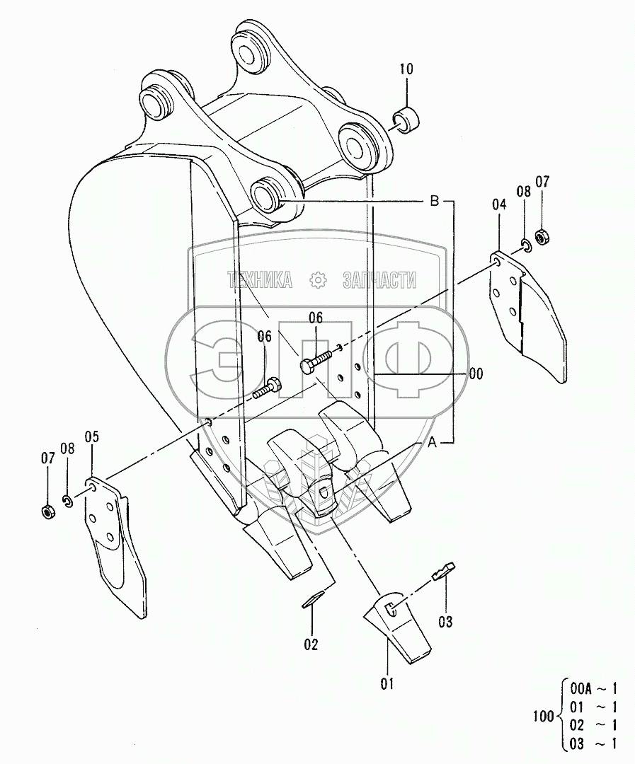 Каталог запасных частей к технике: Hitachi EX-120-2. Bucket 0.25
