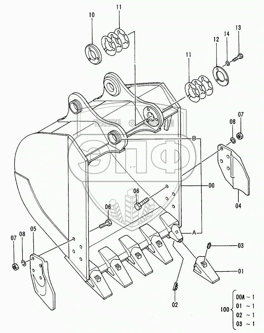 Каталог запасных частей к технике: Hitachi EX-120-2. Bucket 0.45