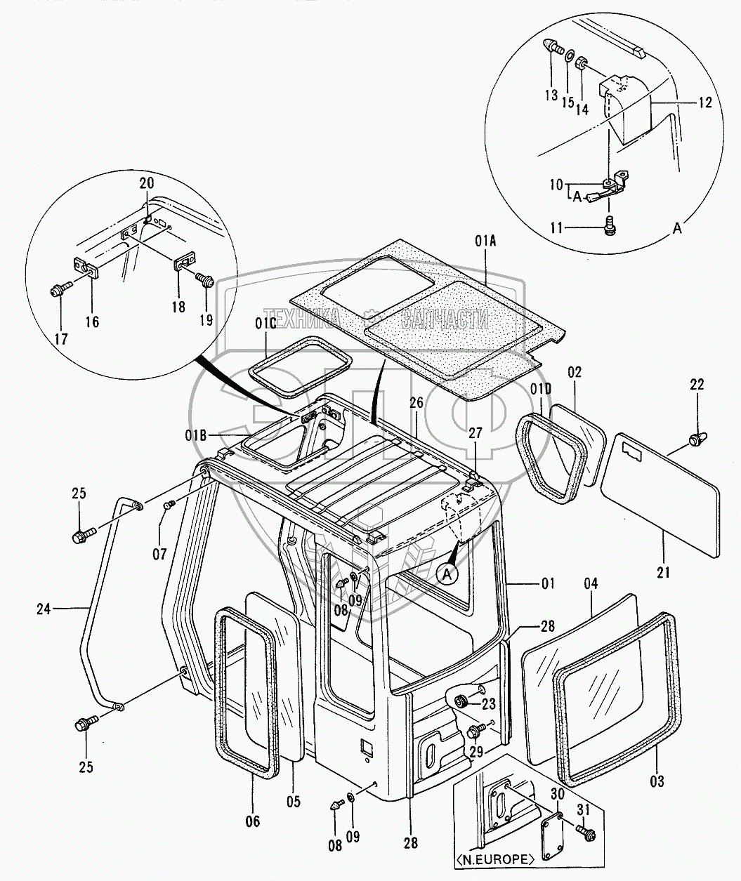 Каталог запасных частей к технике: Hitachi EX-120-2. Cab (1)