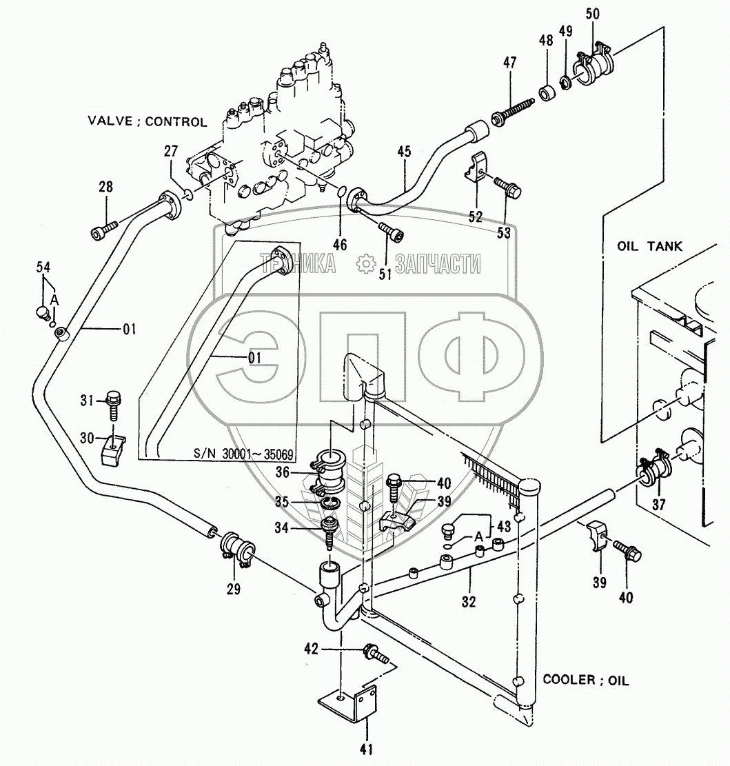 Каталог запасных частей к технике: Hitachi EX-120-2. Oil Cooler Pipings (2)