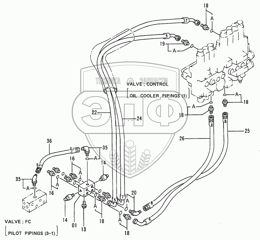 Каталог запасных частей к технике: Hitachi EX-120-2. Pilot Pipings (3-2)