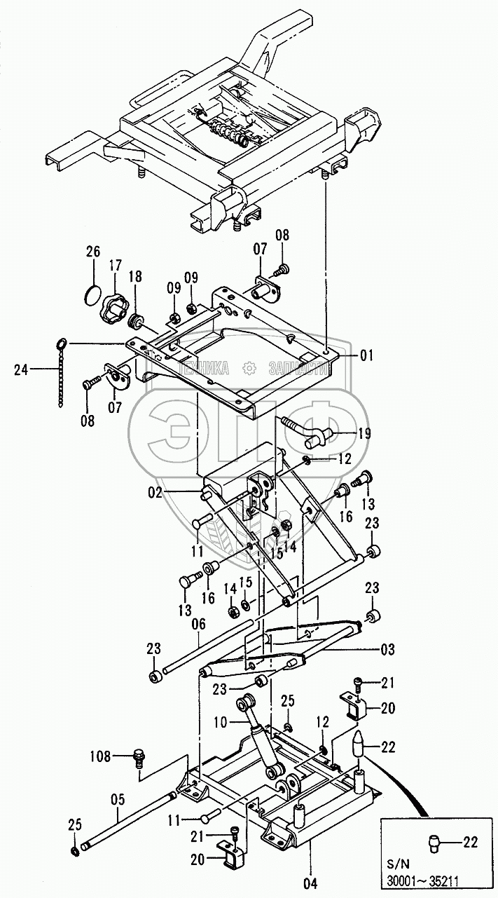 Каталог запасных частей к технике: Hitachi EX-120-2. Seat Suspension Serial №30001-38429