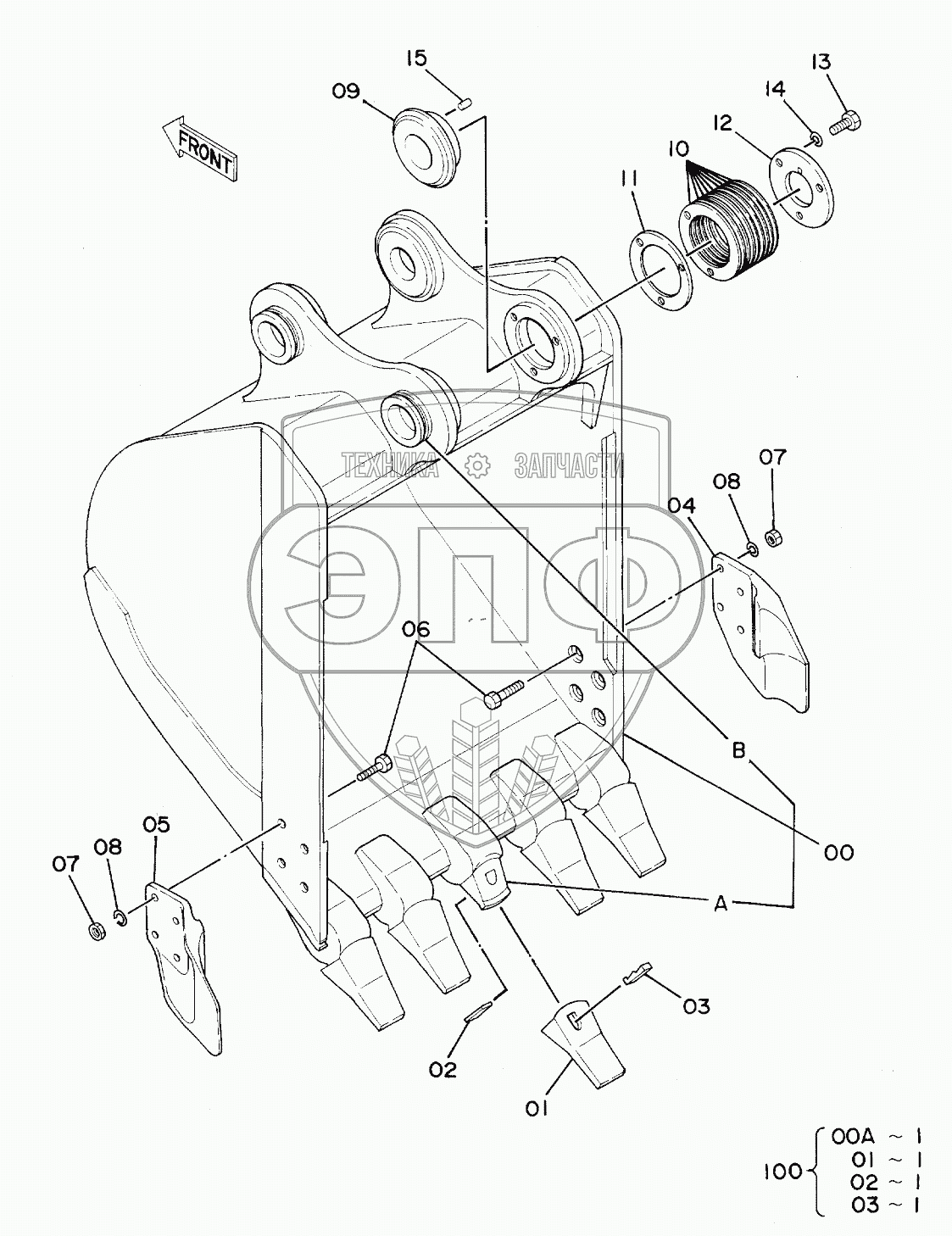 Каталог запасных частей к технике: Hitachi EX-160WD. BUCKET 0.55