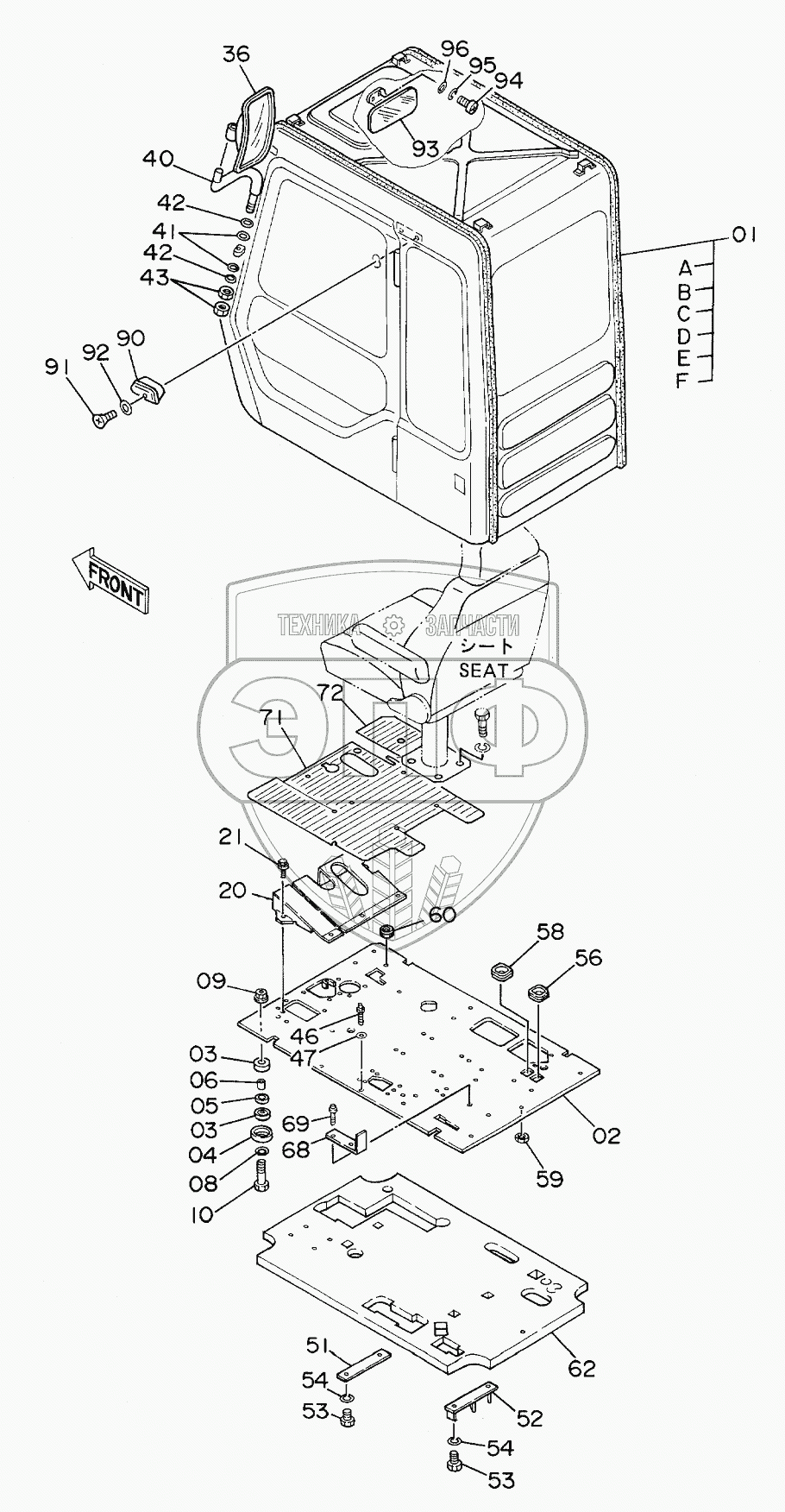 Каталог запасных частей к технике: Hitachi EX-160WD. CAB GROUP