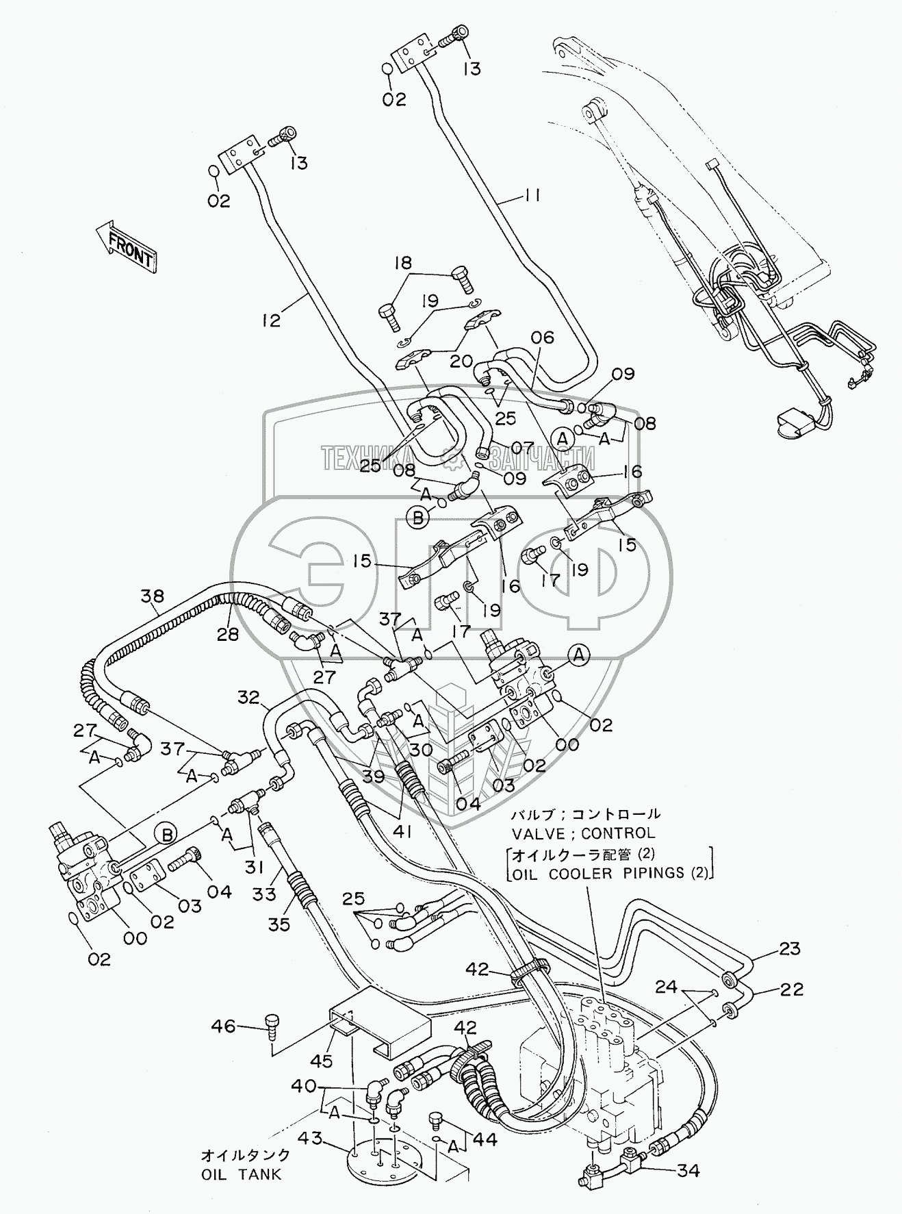 Каталог запасных частей к технике: Hitachi EX-160WD. HOSE RUPTURE VALVE PIPINGS (BOOM)