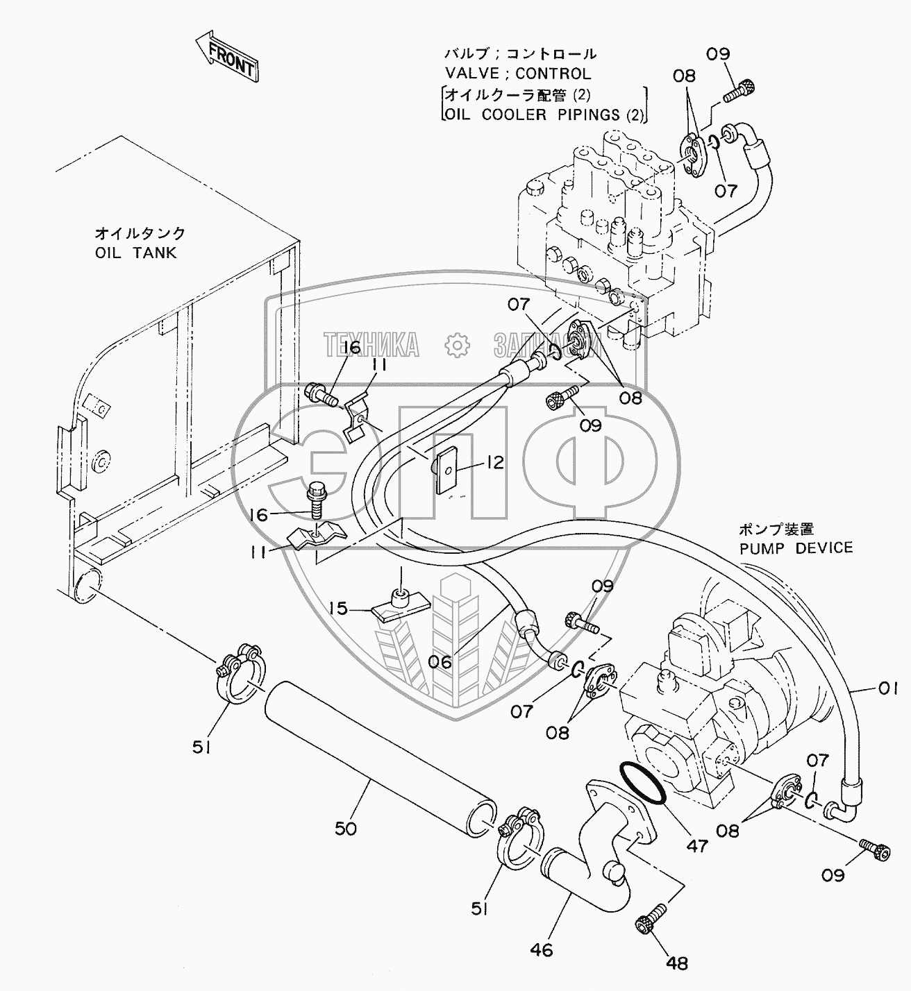 Каталог запасных частей к технике: Hitachi EX-160WD. OIL COOLER PIPINGS (1)