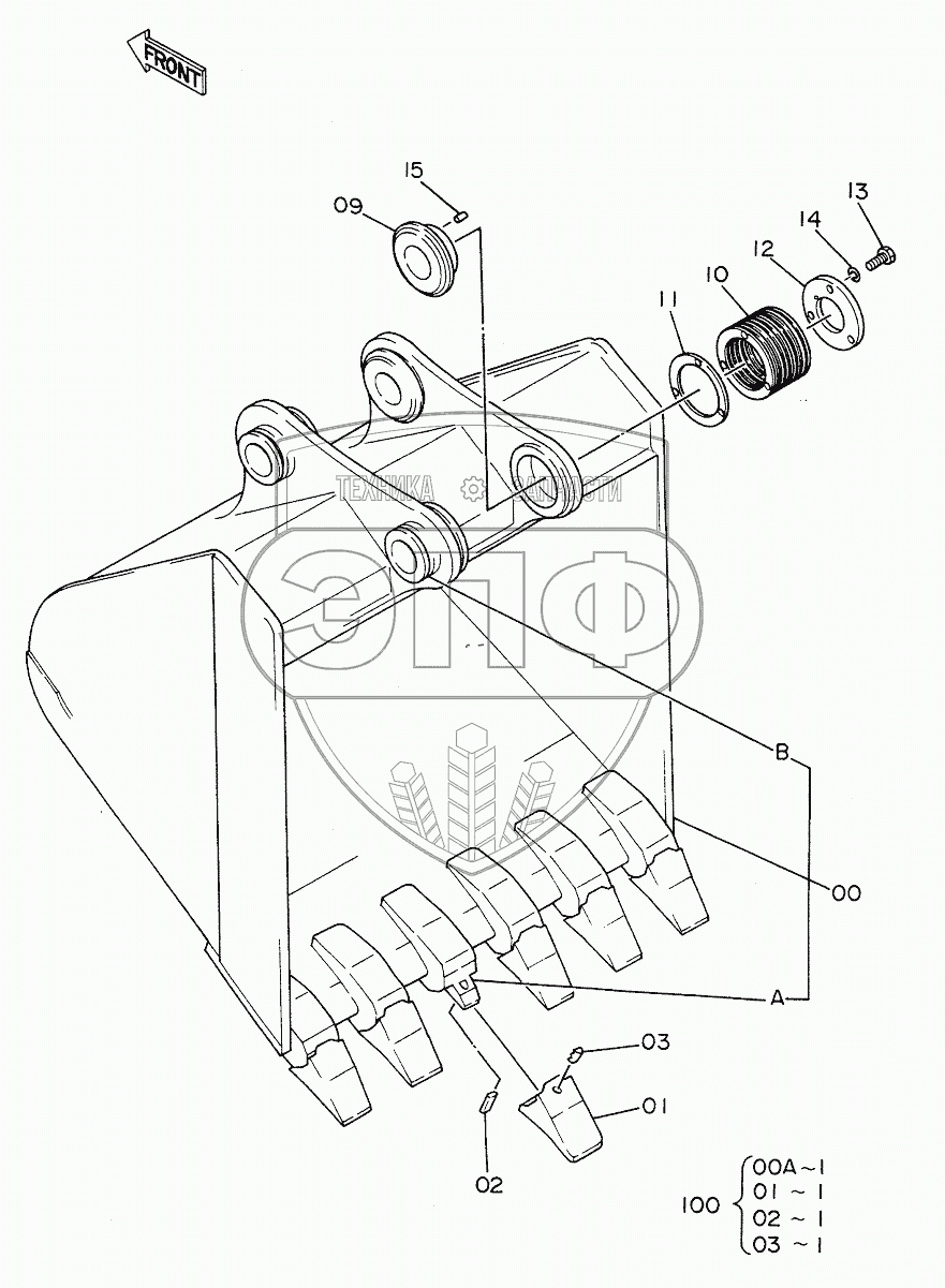 Каталог запасных частей к технике: Hitachi EX-200. BUCKET 1.0