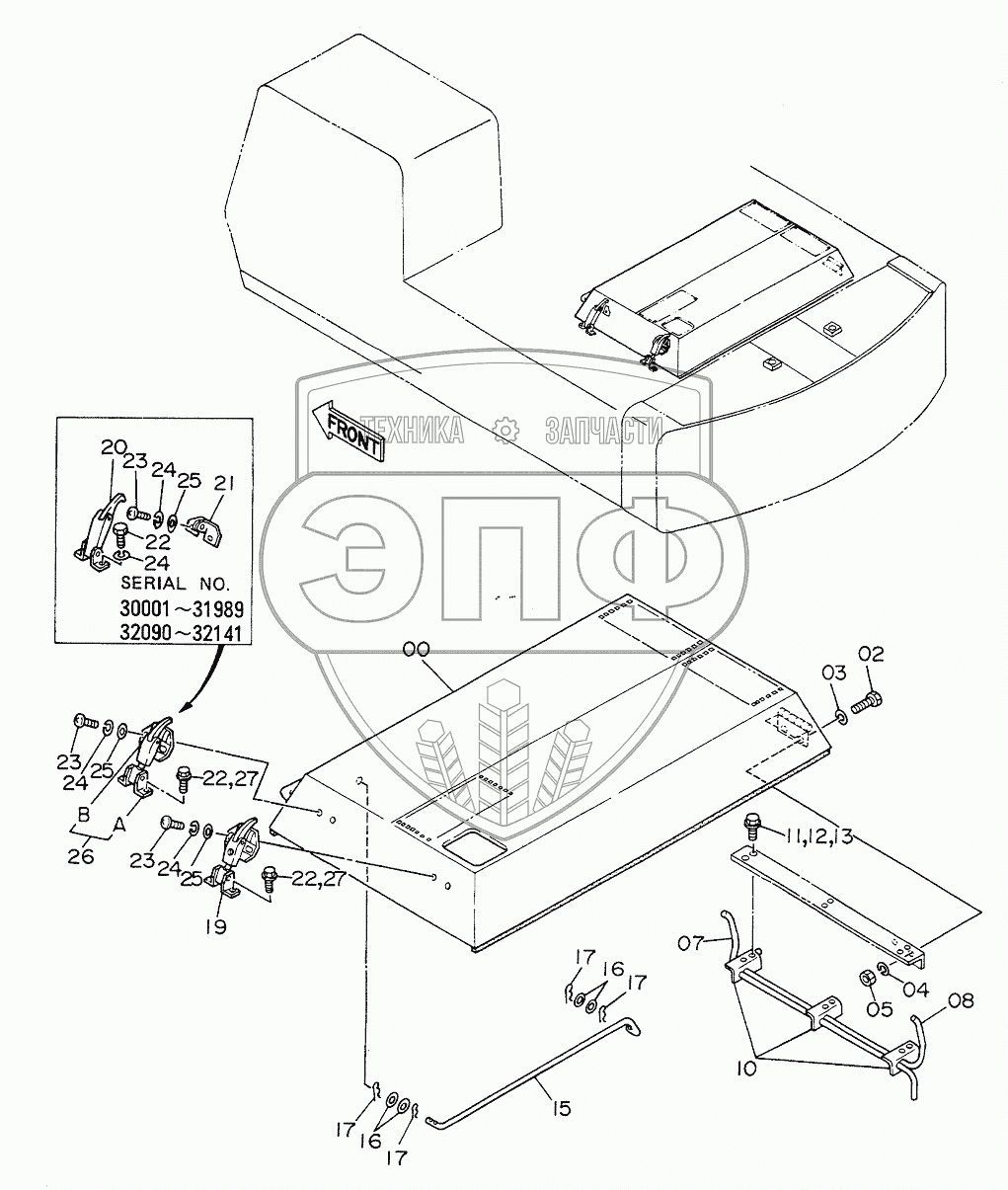 Каталог запасных частей к технике: Hitachi EX-200. ENGINE COVER