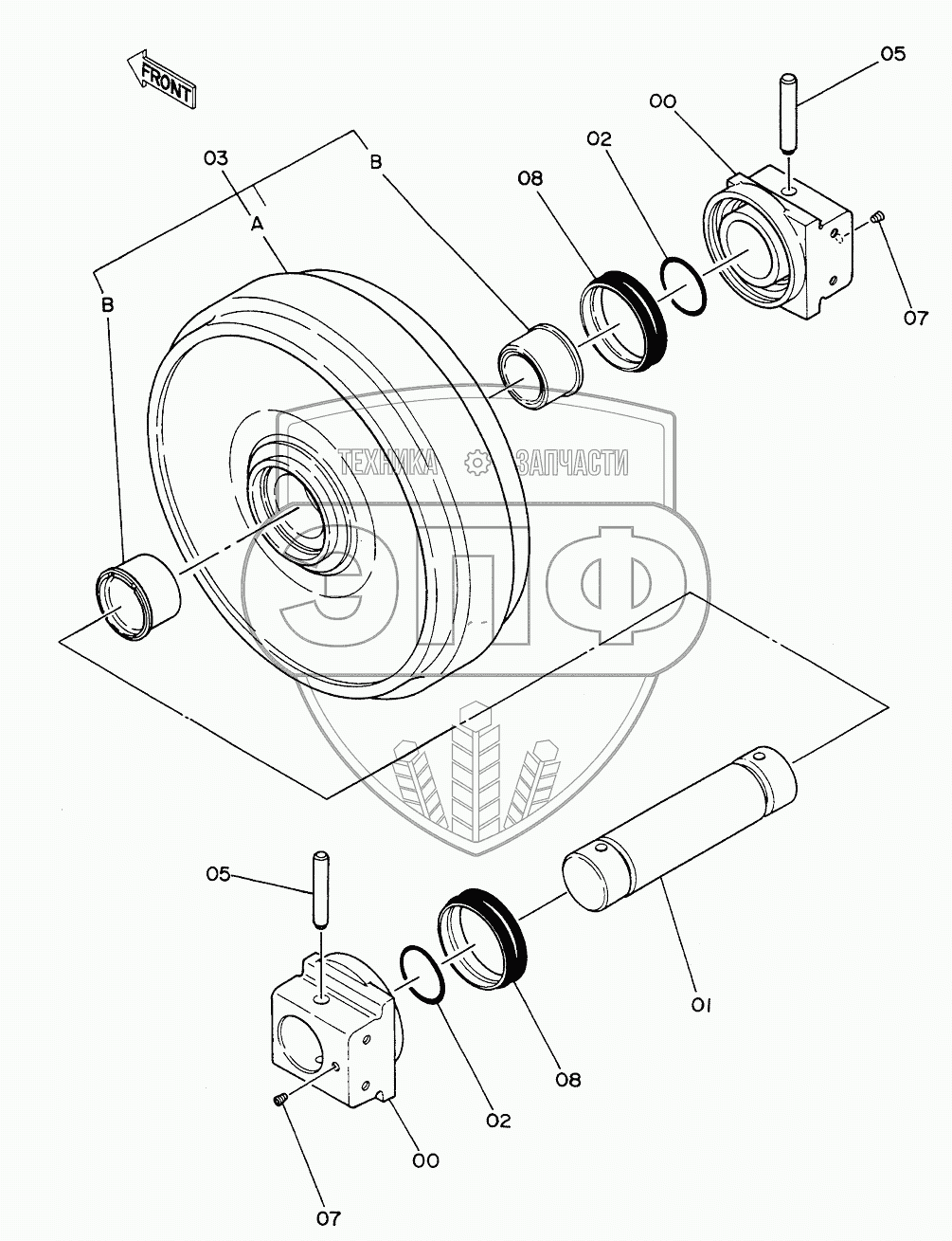 Каталог запасных частей к технике: Hitachi EX-200. FRONT IDLER
