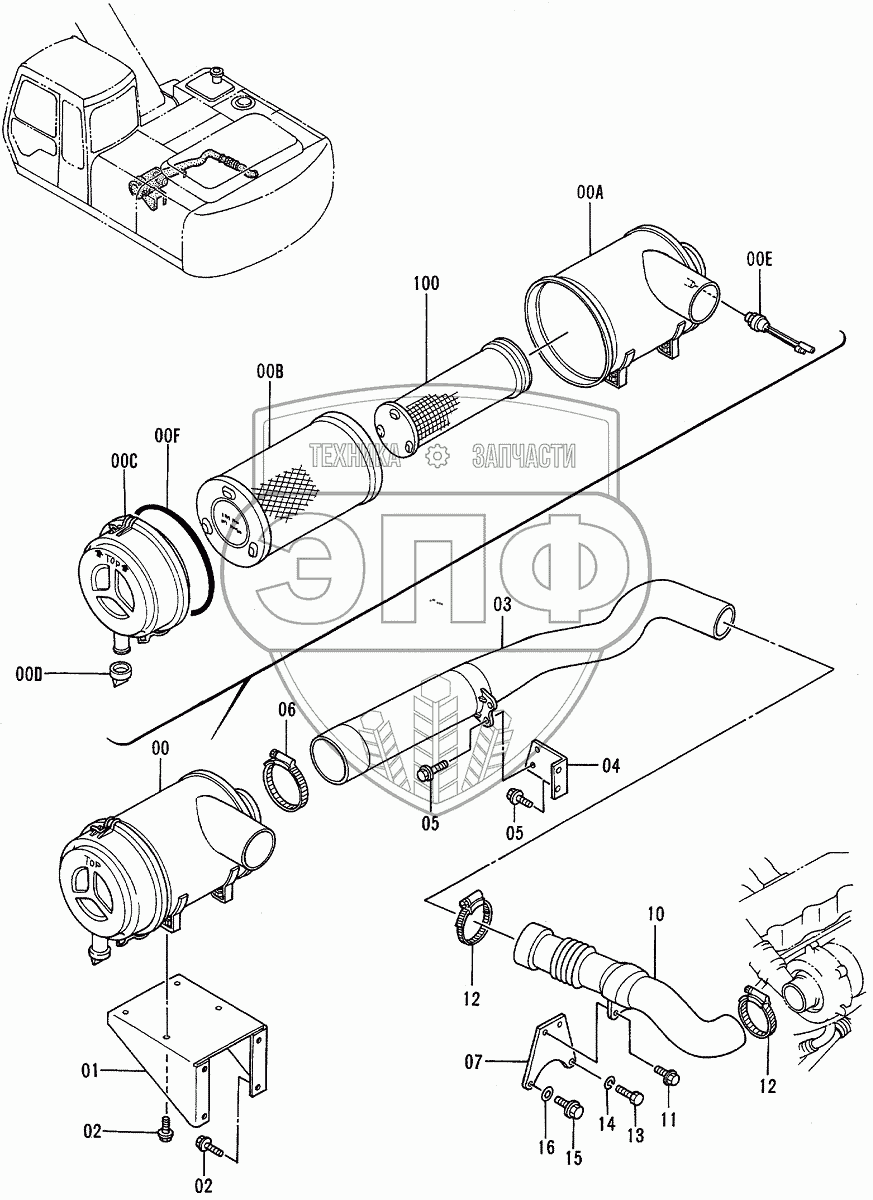 Каталог запасных частей к технике: Hitachi EX-200-3. AIR CLEANER