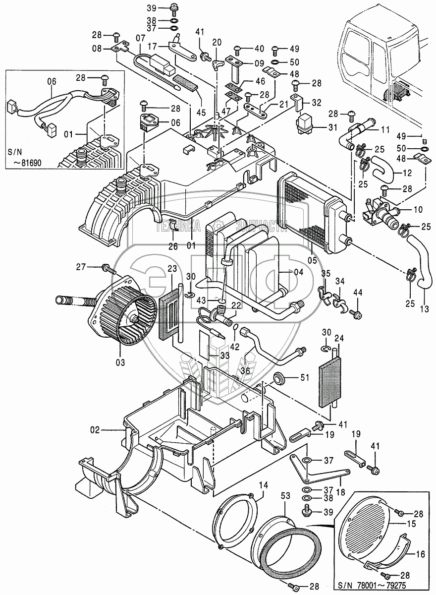 Каталог запасных частей к технике: Hitachi EX-200-3. AIR-CON. UNIT