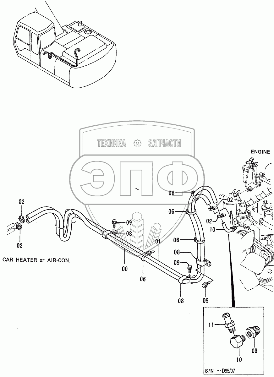 Каталог запасных частей к технике: Hitachi EX-200-3. HEATER PIPINGS