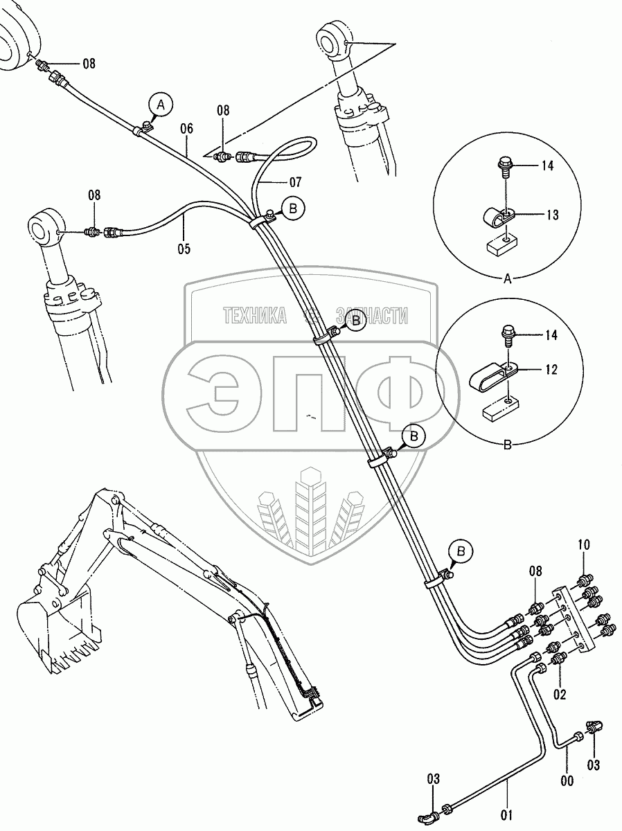 Каталог запасных частей к технике: Hitachi EX-200-3. LUBRICATE PIPINGS