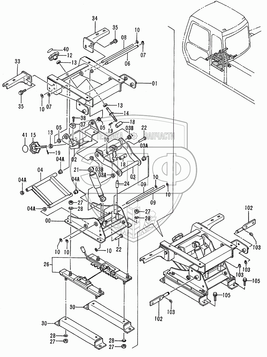 Каталог запасных частей к технике: Hitachi EX-200-3. SEAT SUSPENSION <STD>