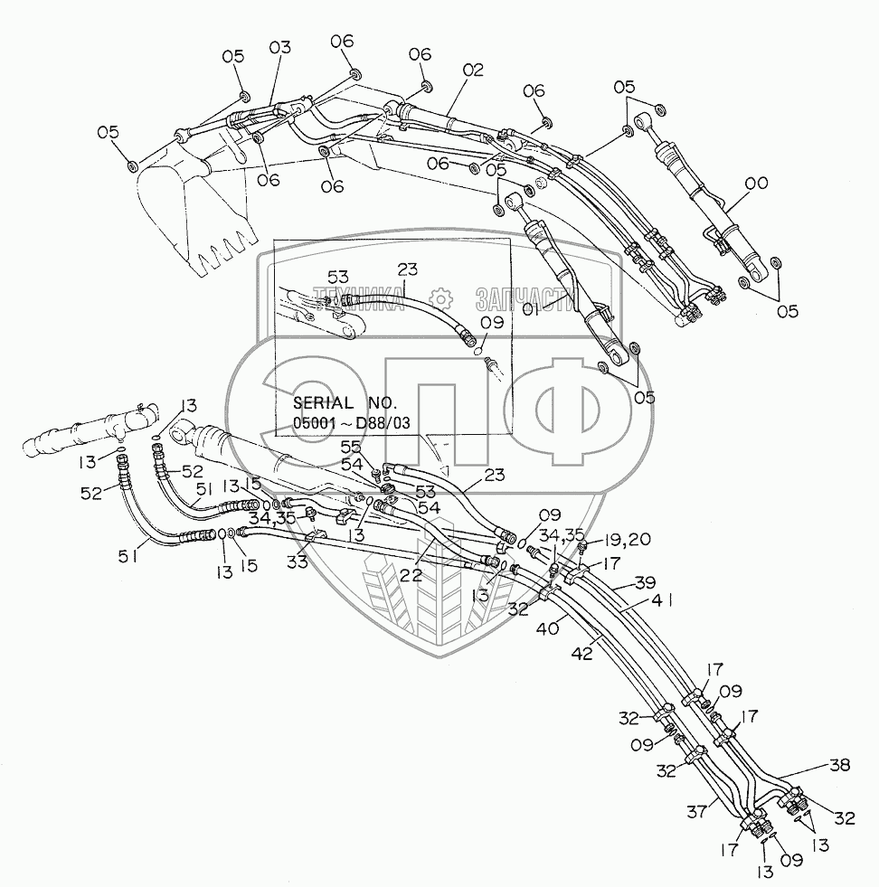 Каталог запасных частей к технике: Hitachi EX-220. FRONT PIPINGS
