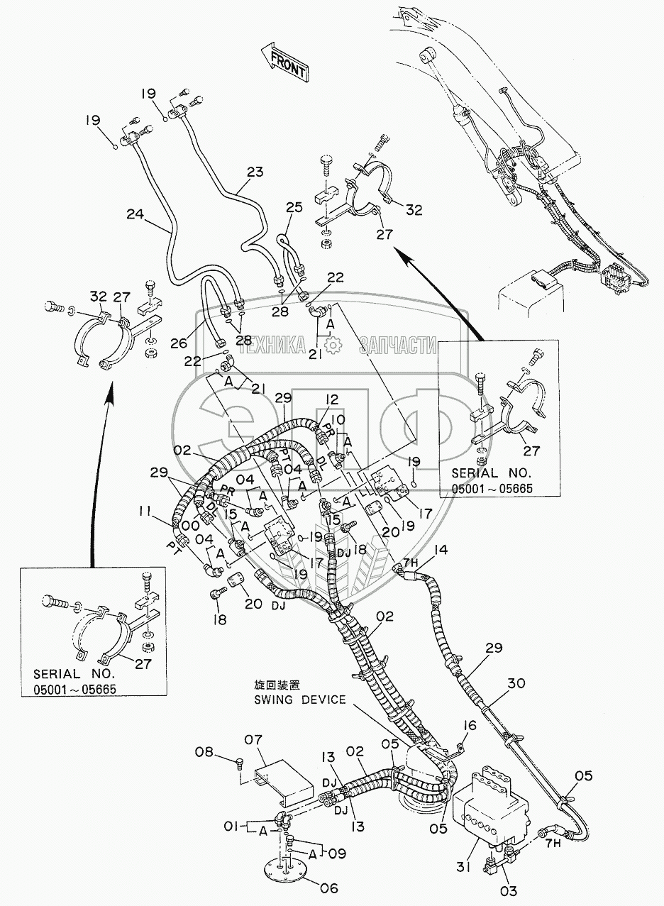 Каталог запасных частей к технике: Hitachi EX-220. HOSE RUPTURE VALVE PIPINGS (BOOM)