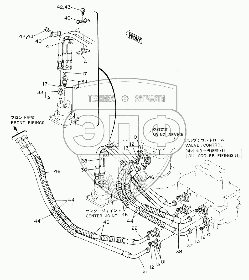 Каталог запасных частей к технике: Hitachi EX-220. MAIN PIPINGS (1)