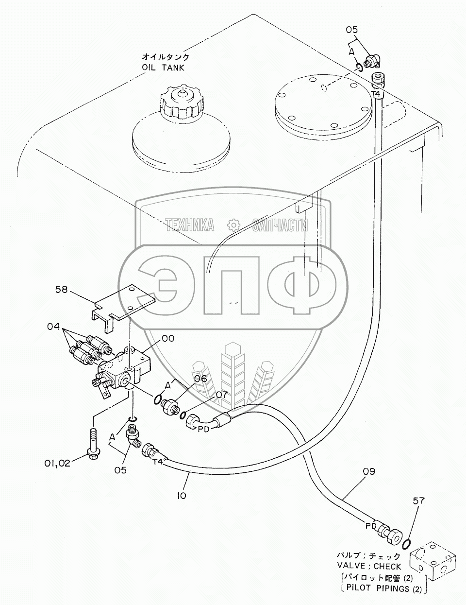 Каталог запасных частей к технике: Hitachi EX-220. PILOT PIPINGS (3-3)