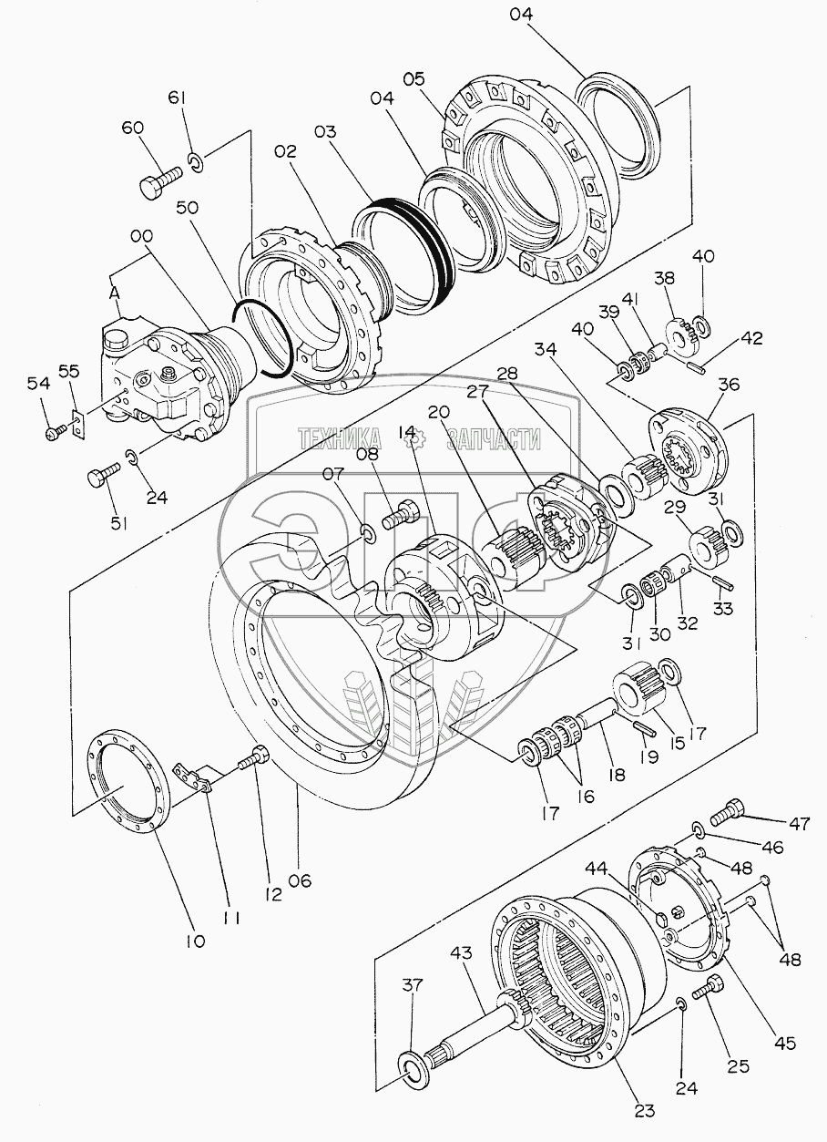 Каталог запасных частей к технике: Hitachi EX-220. TRAVEL DEVICE