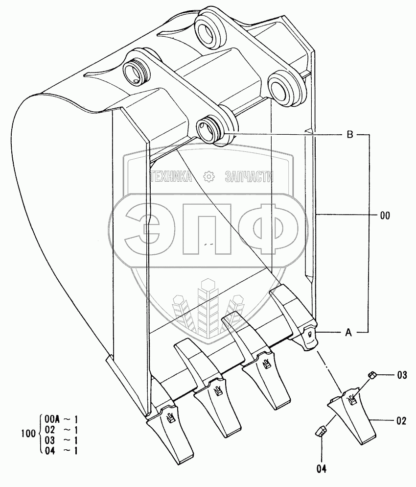 Каталог запасных частей к технике: Hitachi EX-220-2. BUCKET 0.35