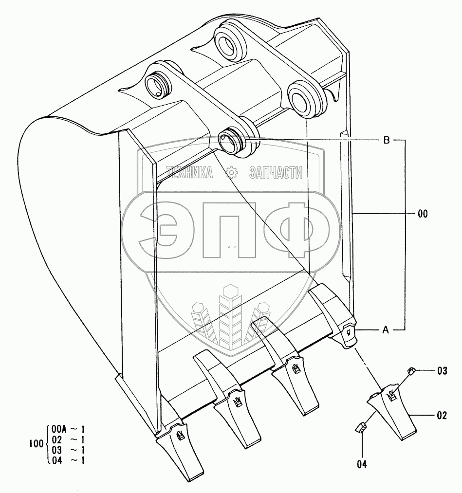 Каталог запасных частей к технике: Hitachi EX-220-2. BUCKET 0.4