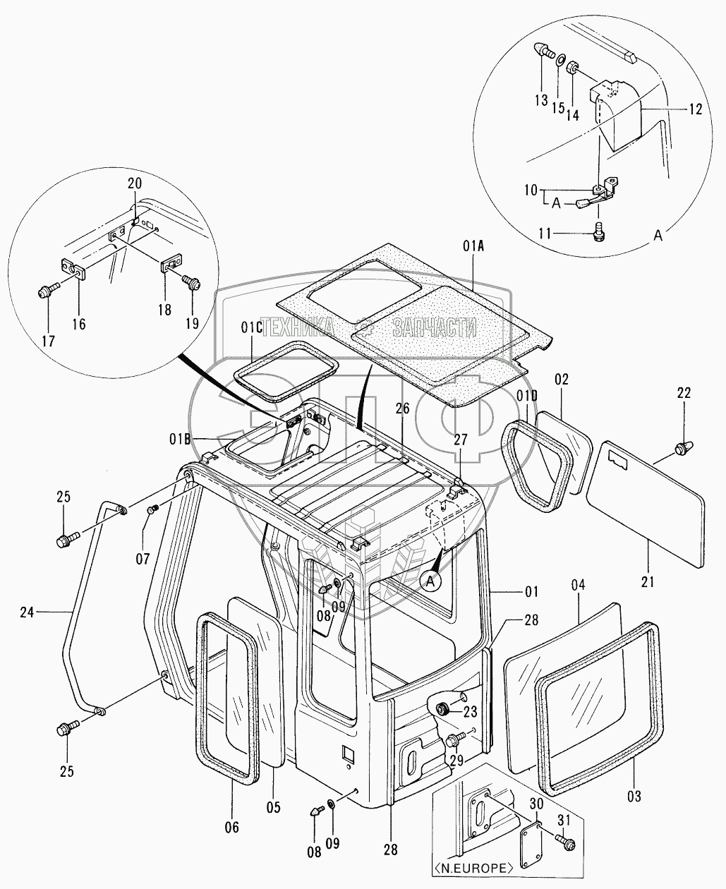 Каталог запасных частей к технике: Hitachi EX-220-2. CAB (1)