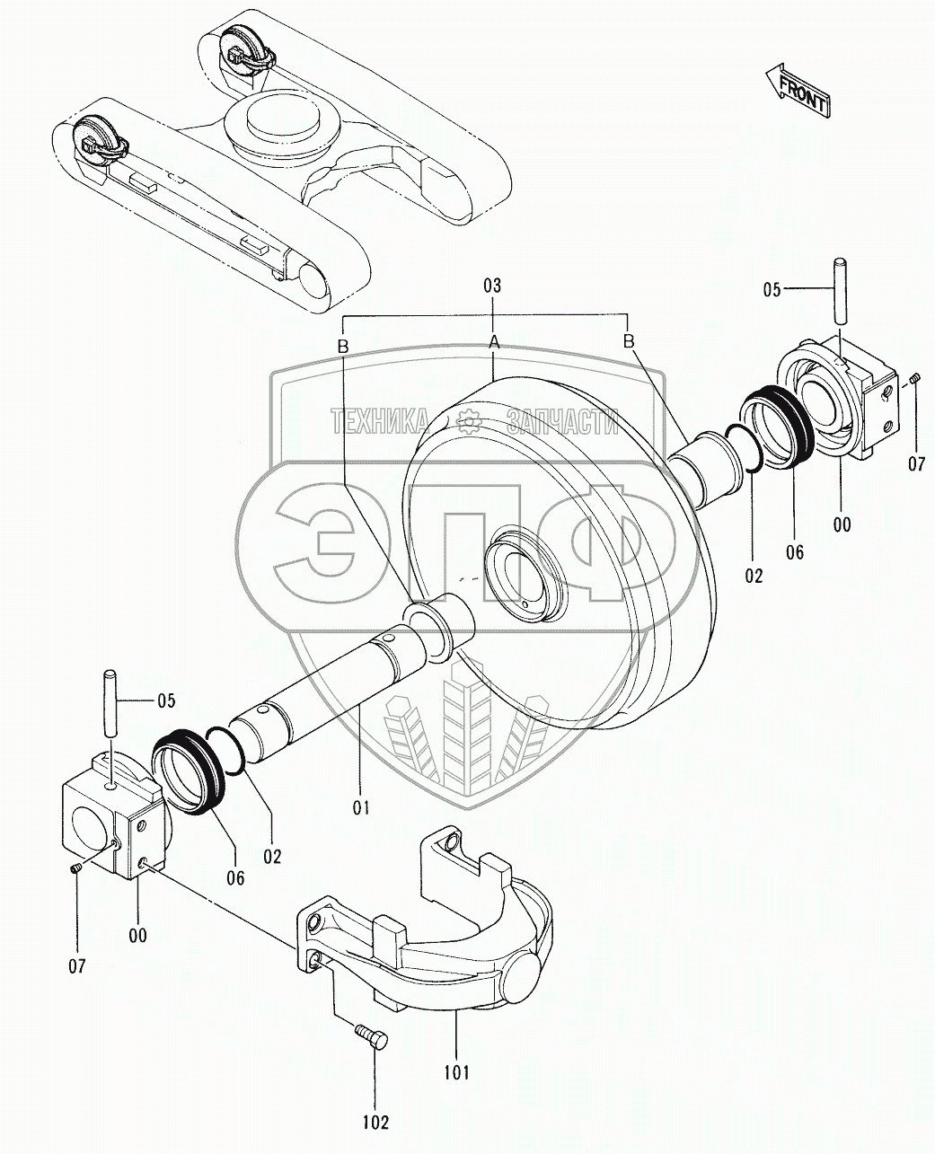 Каталог запасных частей к технике: Hitachi EX-220-2. FRONT IDLER