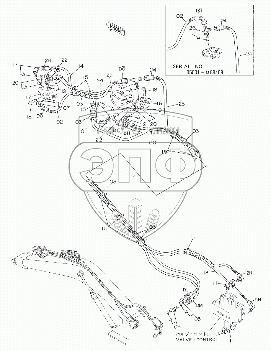 Каталог запасных частей к технике: Hitachi EX-270. HOSE RUPTURE VALVE PIPINGS (ARM)