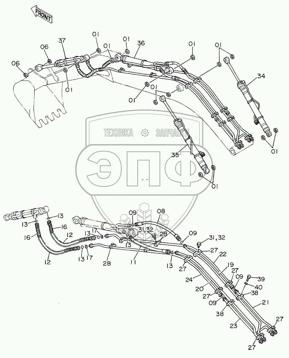 Каталог запасных частей к технике: Hitachi EX-300. FRONT PIPINGS