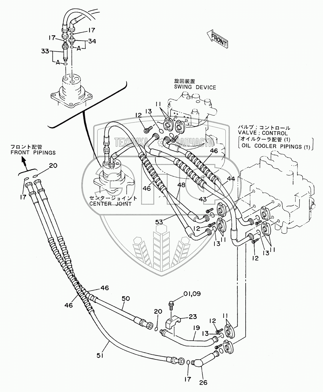 Каталог запасных частей к технике: Hitachi EX-300. MAIN PIPINGS (1)