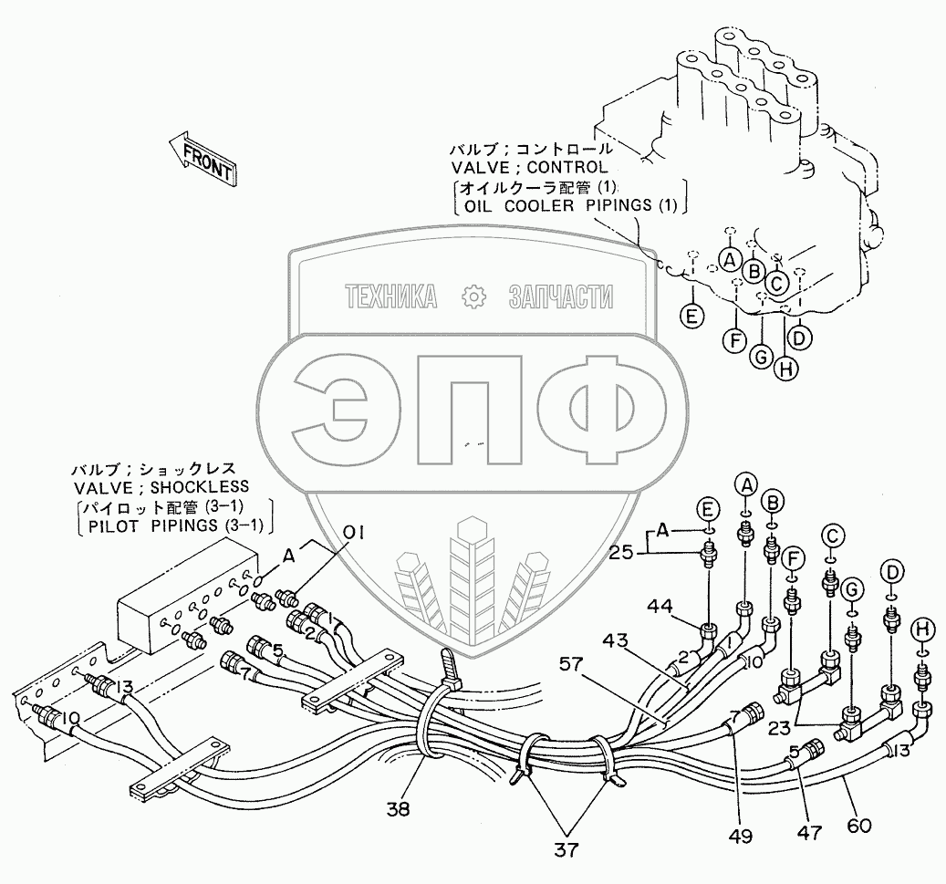 Каталог запасных частей к технике: Hitachi EX-300. PILOT PIPINGS (3-2)