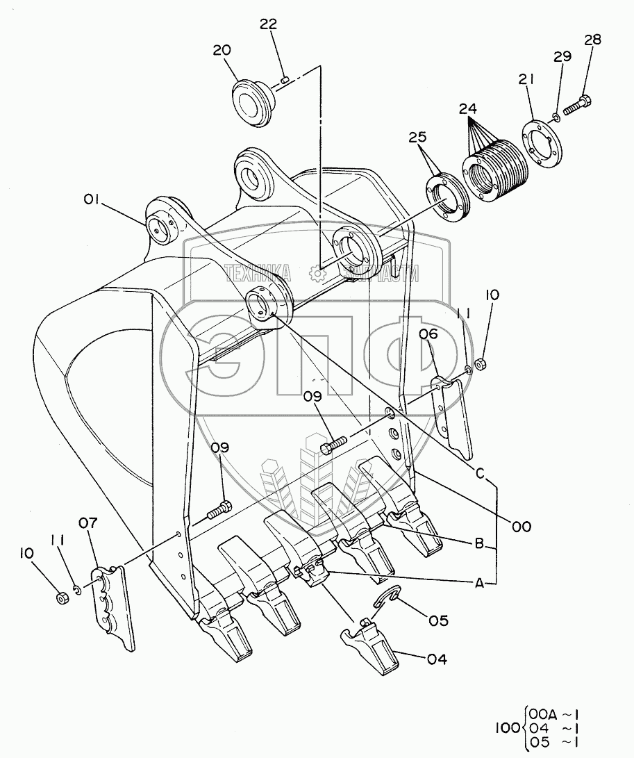 Каталог запасных частей к технике: Hitachi EX-300. ROCK BUCKET 1.2