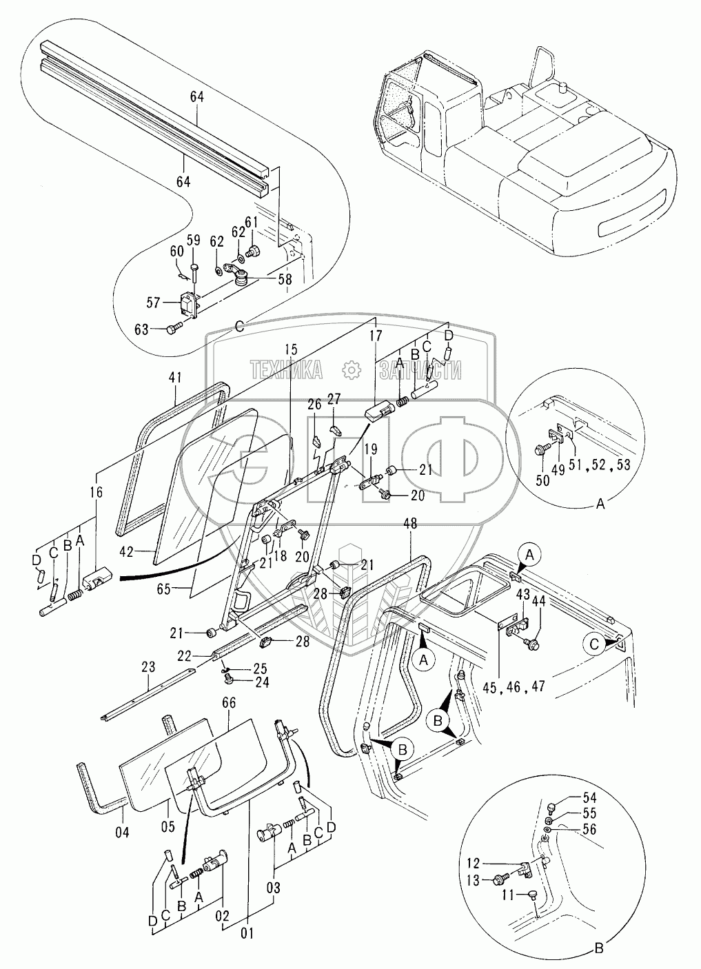 Каталог запасных частей к технике: Hitachi EX-300-2. CAB (2)
