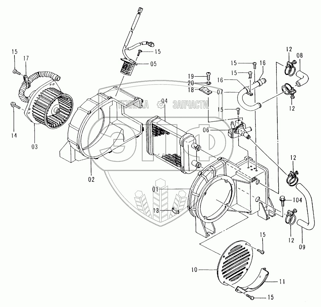 Каталог запасных частей к технике: Hitachi EX-300-2. CAR HEATER(STD) (006037-)