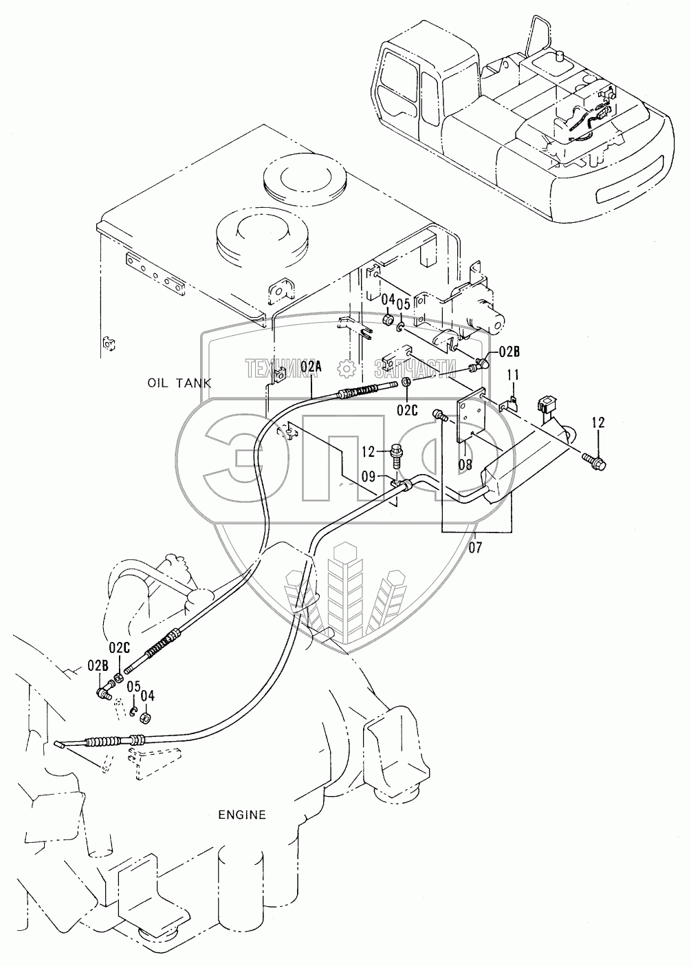 Каталог запасных частей к технике: Hitachi EX-300-2. ENGINE CONTROL CABLE