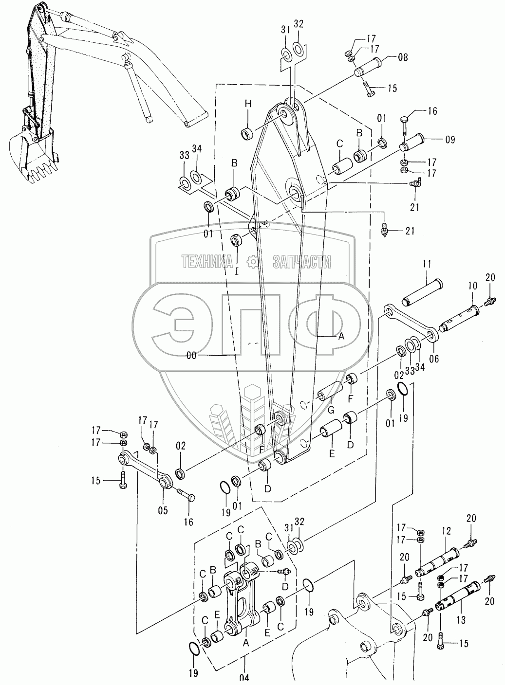 Каталог запасных частей к технике: Hitachi EX-300-2. LONG ARM (4.0M)