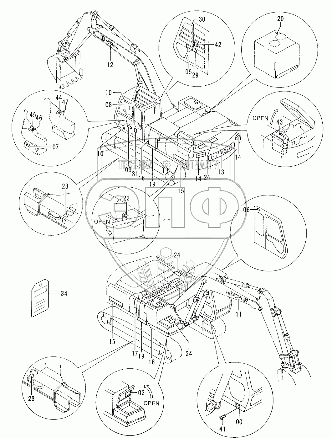 Каталог запасных частей к технике: Hitachi EX-300-2. NAME-PLATE (ENGLISH)(USA)