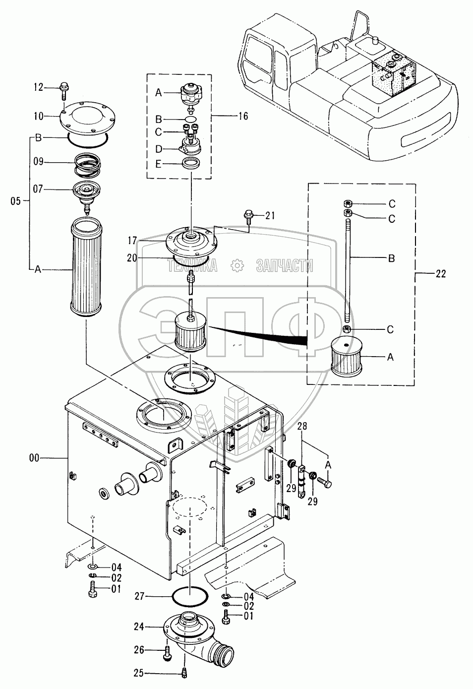 Каталог запасных частей к технике: Hitachi EX-300-2. OIL TANK