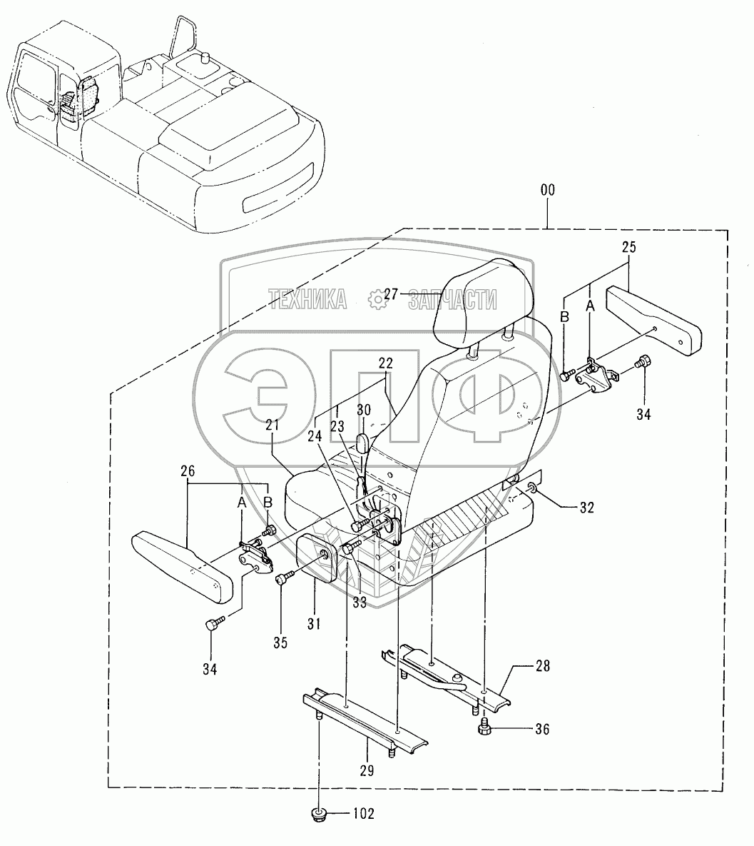 Каталог запасных частей к технике: Hitachi EX-300-2. SEAT (USA)