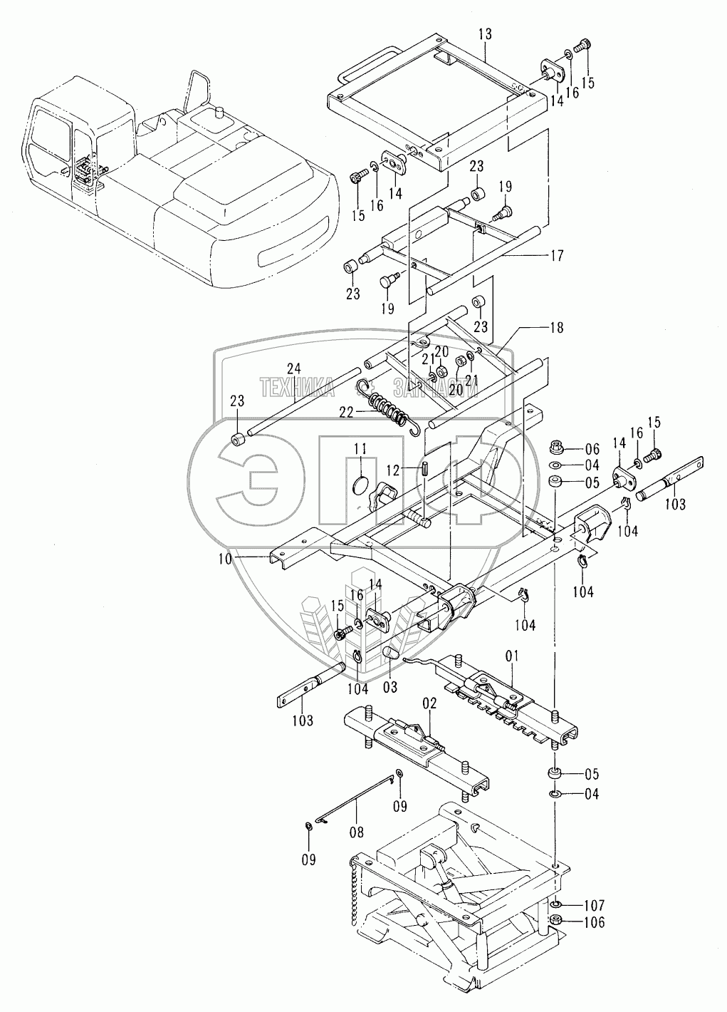 Каталог запасных частей к технике: Hitachi EX-300-2. SEAT STAND (STD)