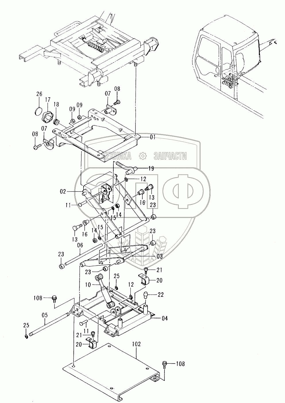 Каталог запасных частей к технике: Hitachi EX-300-2. SEAT SUSPENSION (USA)
