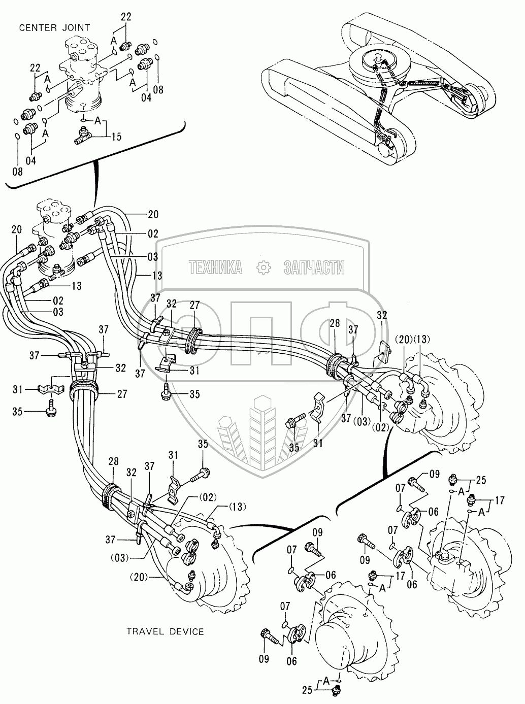 Каталог запасных частей к технике: Hitachi EX-300-2. TRAVEL PIPINGS <LC TRACK>